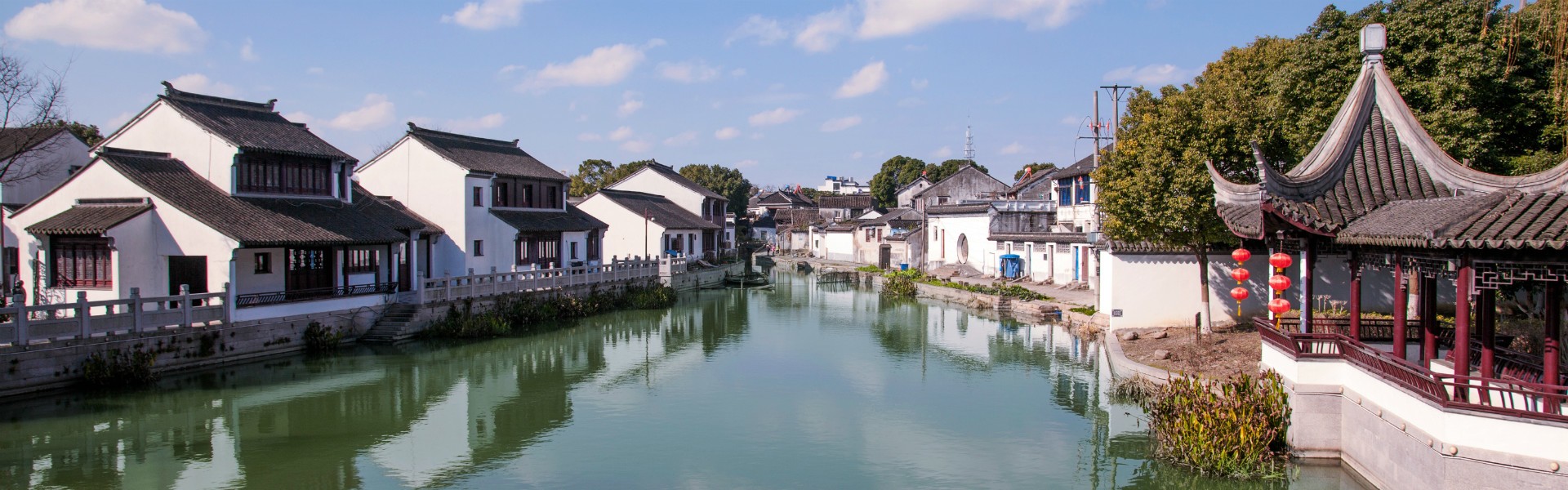 Die Wasserstadt Suzhou ist mit Kanälen, Flüssen und Brücken durchzogen. Alte Gebäude und Straßen sind entlang der Wasserwege gebaut. Viele von ihnen sind noch gut erhalten, was das alte China reflektiert. Sie können entlang der Straßen und Brücken gehen, oder nehmen ein Boot, um die antike Architektur und den schönen Kanal zu schätzen zu wissen.