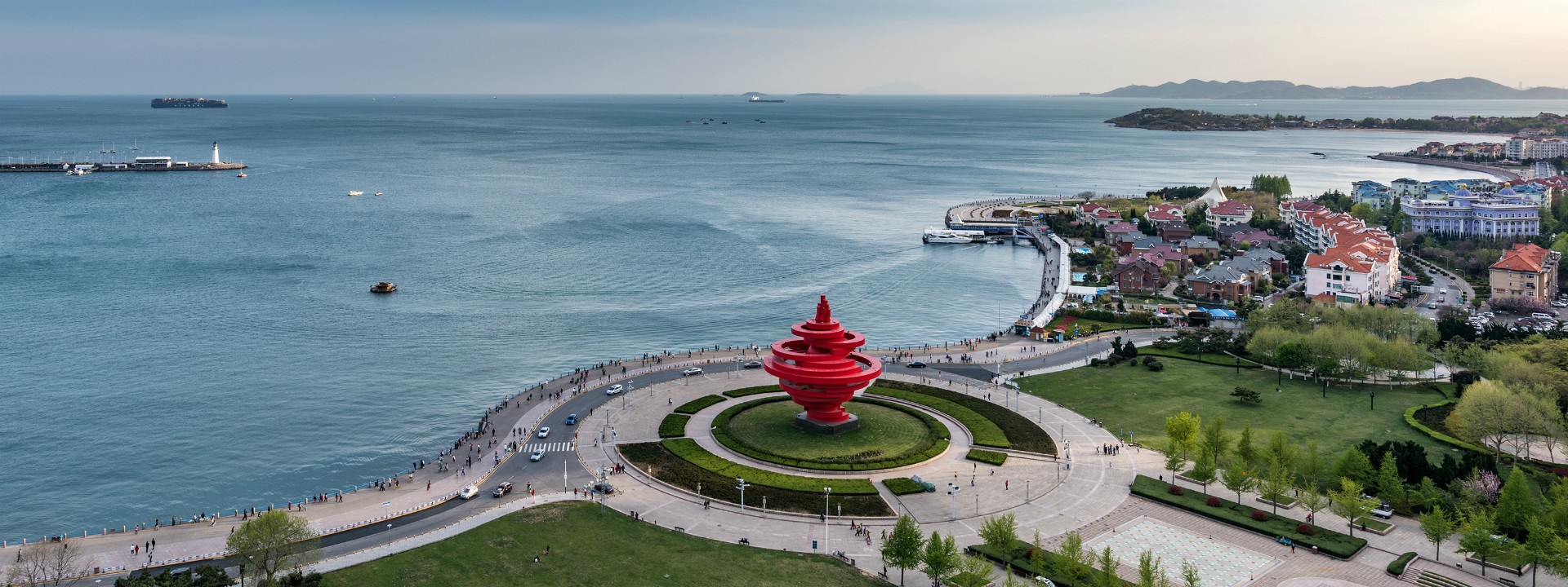 Qingdao befindet sich zwischen Bergen und dem Gelben Meer. Das Klima ist angenehm und die Landschaft sehr reizend. Qingdao ist eine berühmte Gartenstadt in China. Sie ist harmonisch und besitzt europänische Eigenheiten. Rote Dachziegel, grüne Bäume, das blaue Meer und der azurblaue Himmel machen Qingdao zu einer der schönsten Städte in China. Dunkelrote Riffe, sanfte Wellen, bunte Segel, goldene Sandstrände bilden die schöne Landschaft von Qingdao.