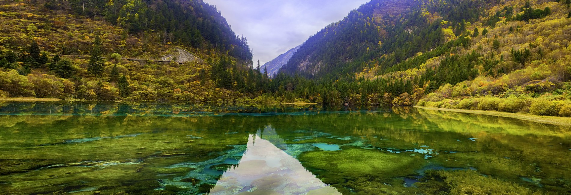 Jiuzhaigou ("Tal der Neun Dörfer") ist im Herbst(September, Oktober and November) besonders malerisch. Warme Tage, kühle Nächte und großartige Ausblicke auf satte Gelb-, Rot- und Grüntöne, die sich in den blauen Seen spiegeln, sind typisch für den Herbst.